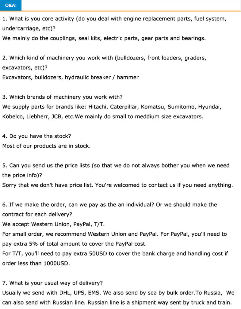 B.Sellos hidráUlicos & Seal kits y Piezas de repuesto de la excavadora de HYD.El cilindro hidráUlico, bomba, motor de giro, el motor propulsor, váLvula de control principal MCV, motor diéSel